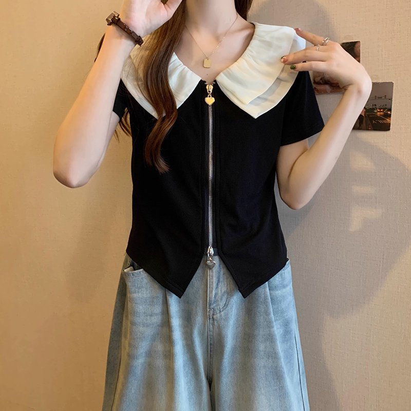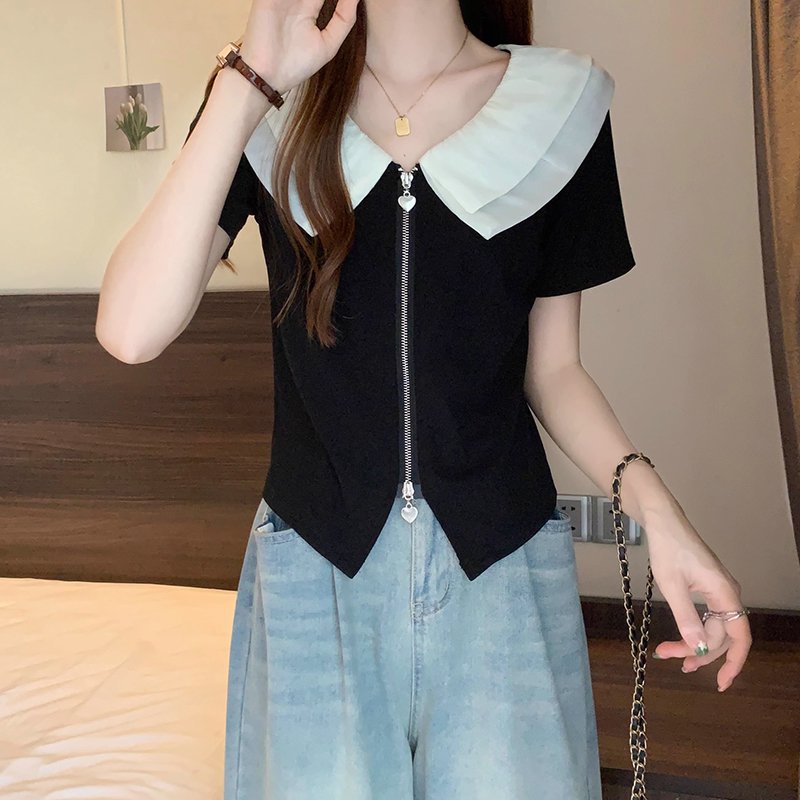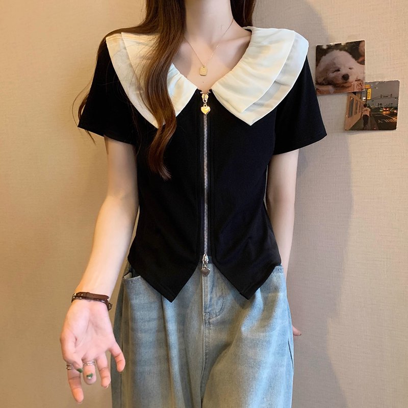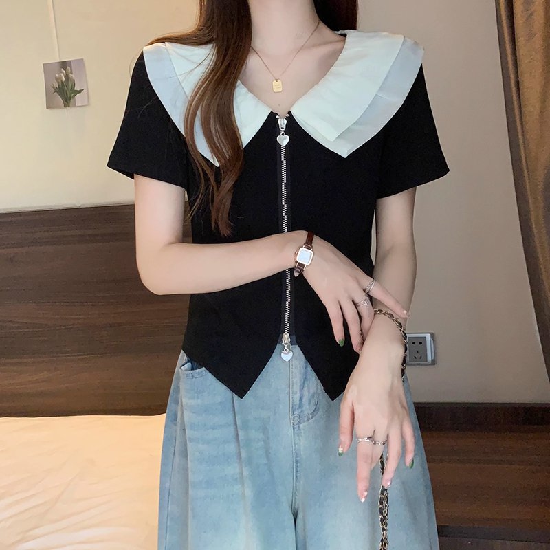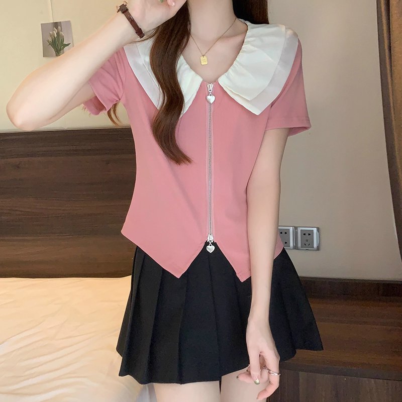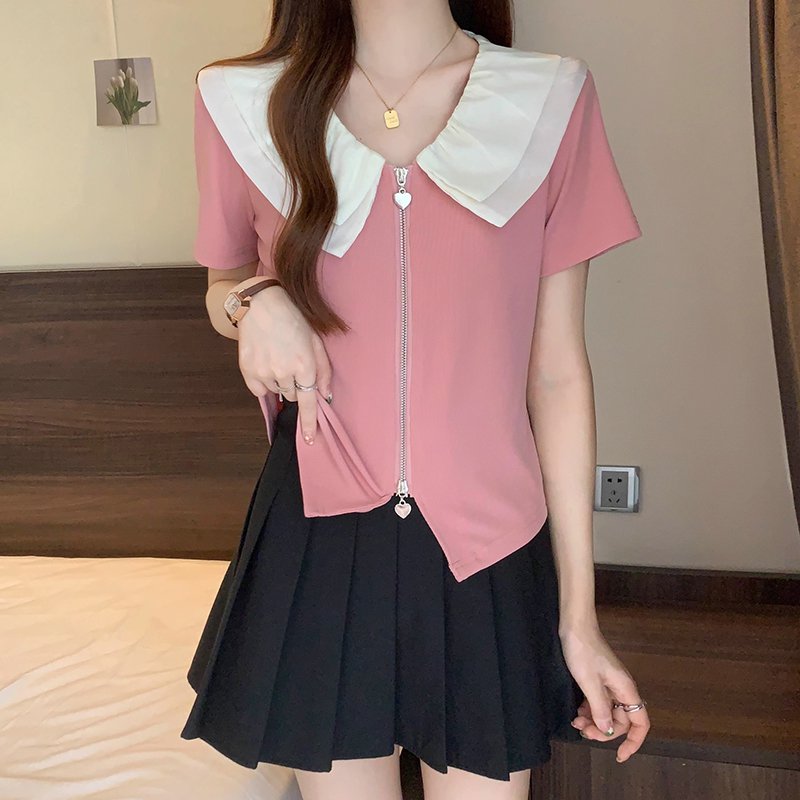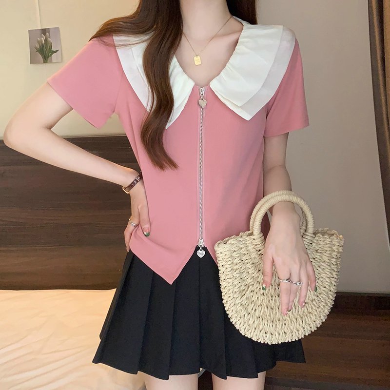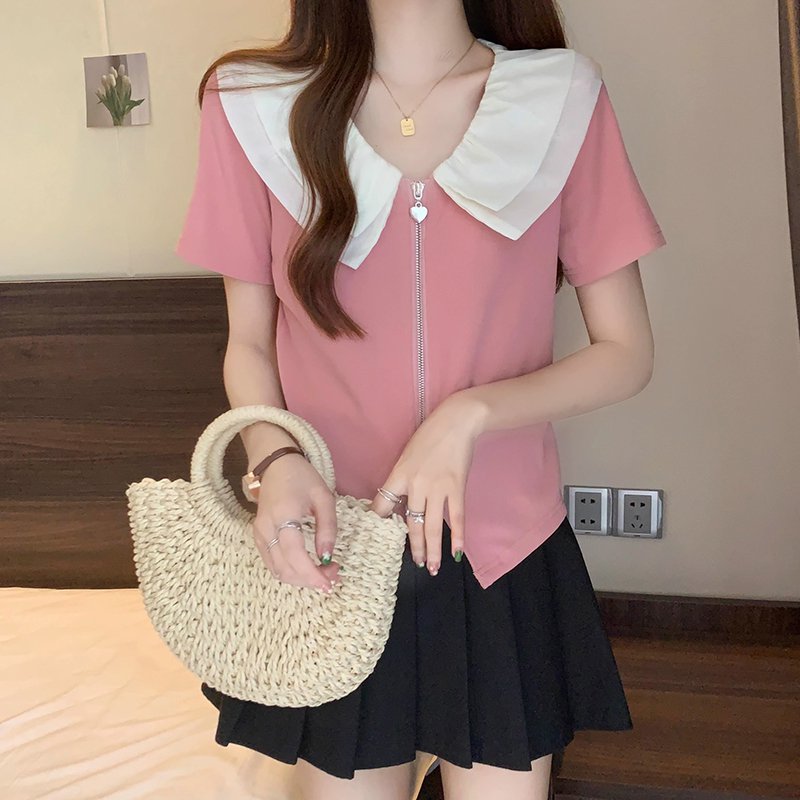 ビッグカラー半袖ブラウス