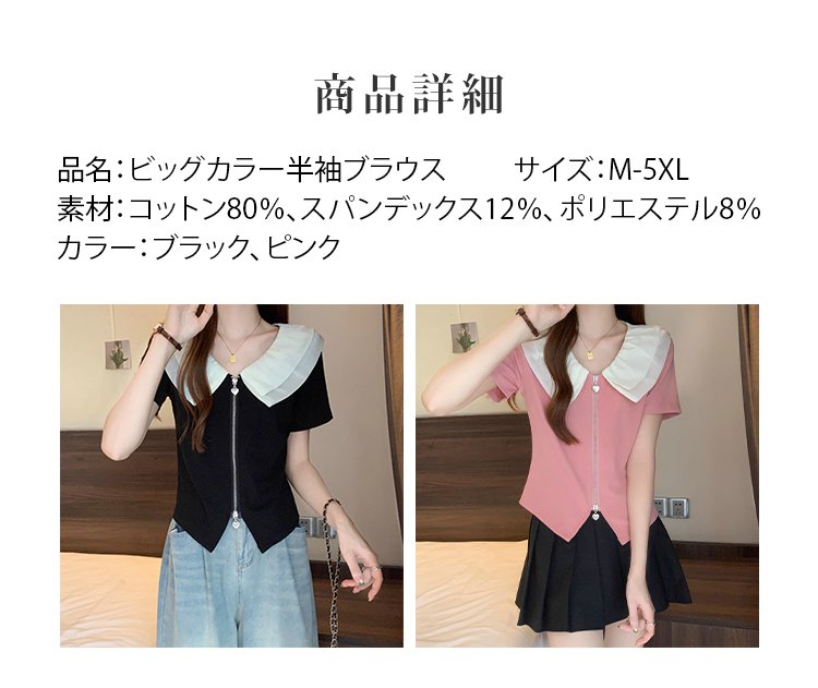 ビッグカラー半袖ブラウス全体画像